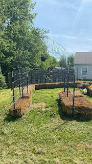 Straw Bale Garden (SBG) update time has *finally* arrived. I know that I've run quite behind this year. I haven't posted anything before this besides a list of seeds. Ha! That said, I have had an increasingly busy springtime. My kiddos are rapidly growing up before my eyes. With that comes balancing jobs (three out of four of us and just the one car) and more outings than ever. My Giraffe and Koala are growing faster than any plant on the property. :) Fortunately, I've gotten some really cute pictures of them through the spring, too! ;) ;) ;)